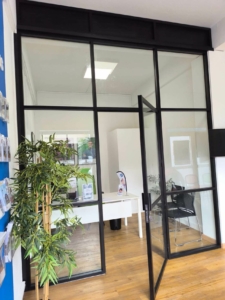 Identité et standing : une verrière sur mesure affirme une identité professionnelle sobre et moderne, apportant un cachet architectural immédiat aux locaux.